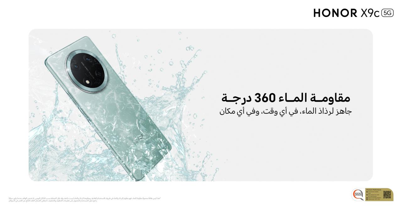 بالإضافة إلى ذلك، فهو مزود أيضًا بمقاومة الماء والغبار IP65M وهيكل مقاوم للماء بثلاث طبقات لتحمل عوامل الطقس الصعبة وحتى الغمر في الماء لعمق 25 سم مدة خمس دقائق. الأمر الذي يجعل HONOR X9c الرفيق المثالي للباحثين عن المغامرة ويريدون هاتفًا ذكيًا يتمتع بنفس المرونة التي يتمتعون بها.